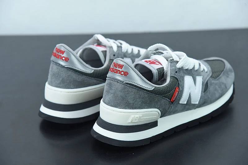 The New Balance 990v1 comes with New Balance’s signature grey shade. It dresses throughout the premium suede overlays as well as the high-quality mesh underneath. The mandatory “N” logo appears on both the laterals in a contrasting white shade.