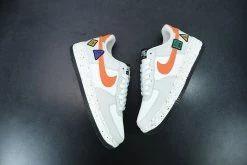This offering of the Nike Air Force 1 Low arrives in a Light Bone, Sail, White, Blue Stone, and Starfish Orange color blocking. It comes constructed in a mix of leather, suede, mesh, and corduroy-like materials with patches on the lateral atop a speckled midsole.