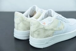 Dressed in a Photon Dust and White color scheme. This Nike Air Force 1 Low features a White tumbled leather build with pony hair finishes on the Swoosh and heel overlay. White mesh tongues, laces, lining, insoles, and AF1 rubber sole completes the design.