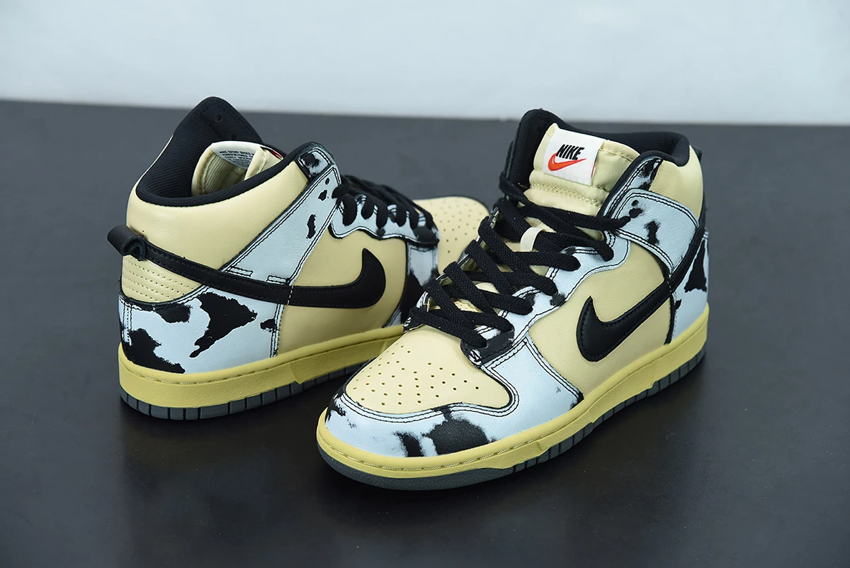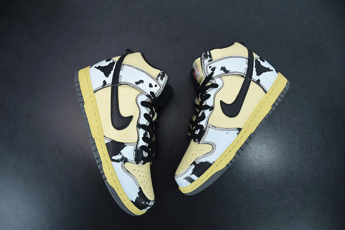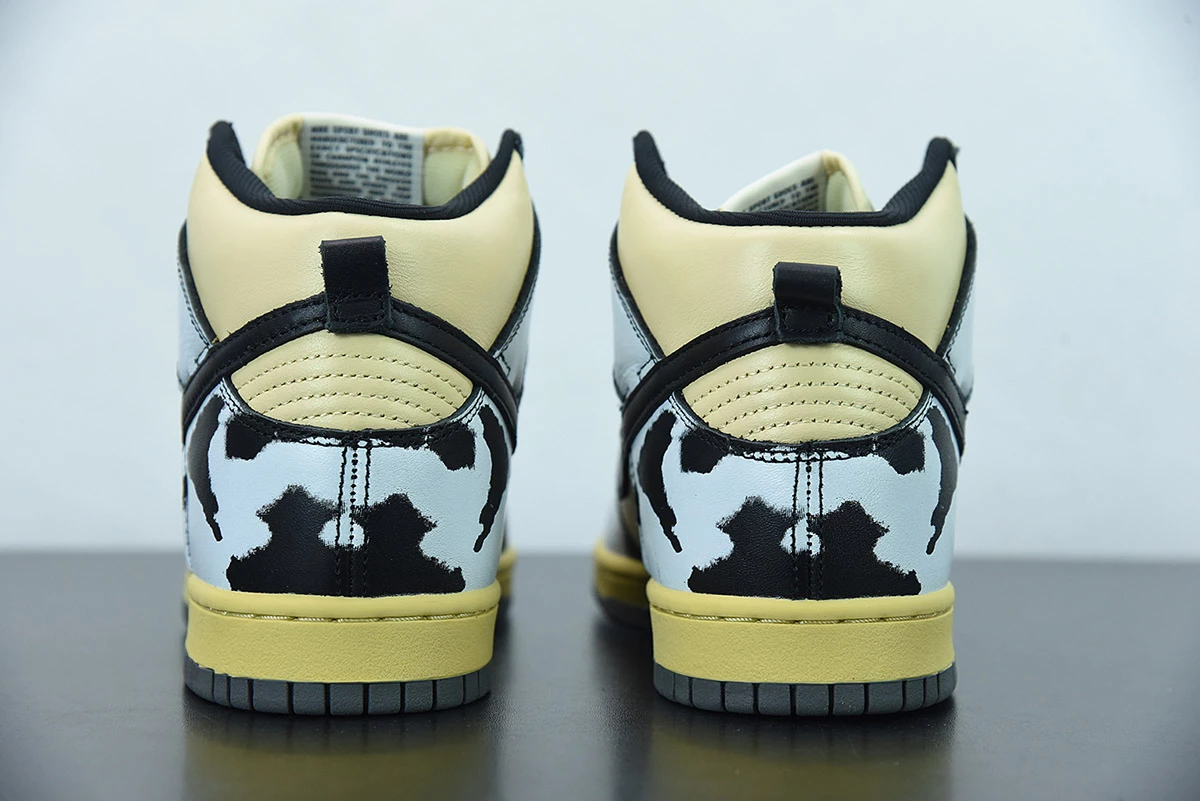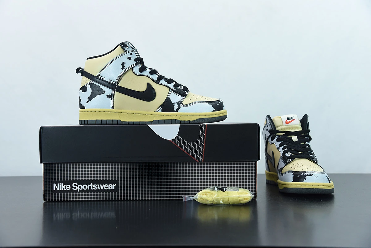 Although the blotch-laden design that extends across the upcoming sneakers’ upper is compelling, the most distinct detail on the pair is unquestionably its shape. The uninitiated might believe this is a new development, but it’s simply a return-to-form for Peter Moore’s iconic basketball silhouette. At a glance, the silhouette largely follows what’s been reworked by Nike SB and Nike Sportswear categories, but closer inspection of the collar and heel area reveal a noticeable difference in trim. Furthermore, the overtly-“aged” panels across the top-half and the modified midsole harken back to the Nike Dunk‘s debut 1985 year. Lastly, the sneaker’s shoe box also indulges in vintage flair, donning a series of new graphics and colors.