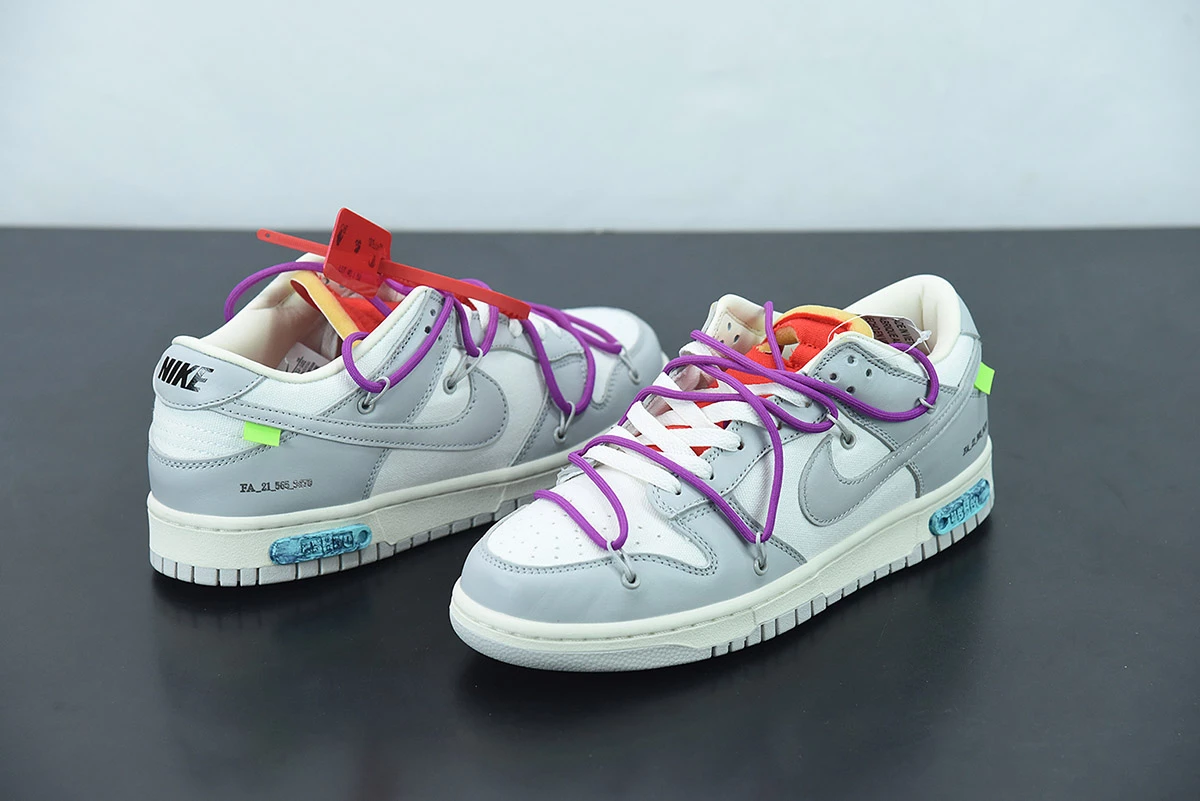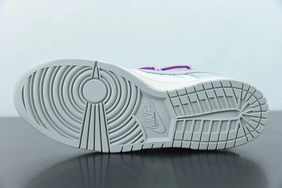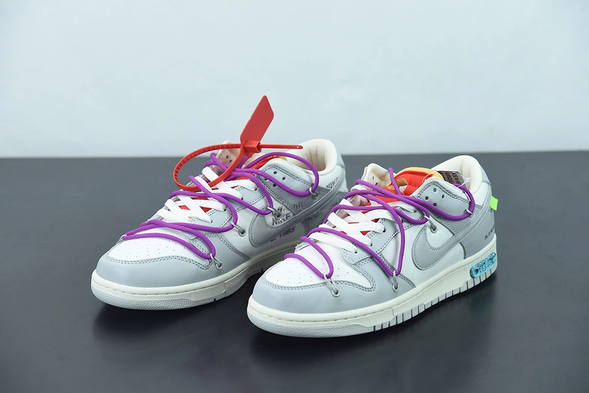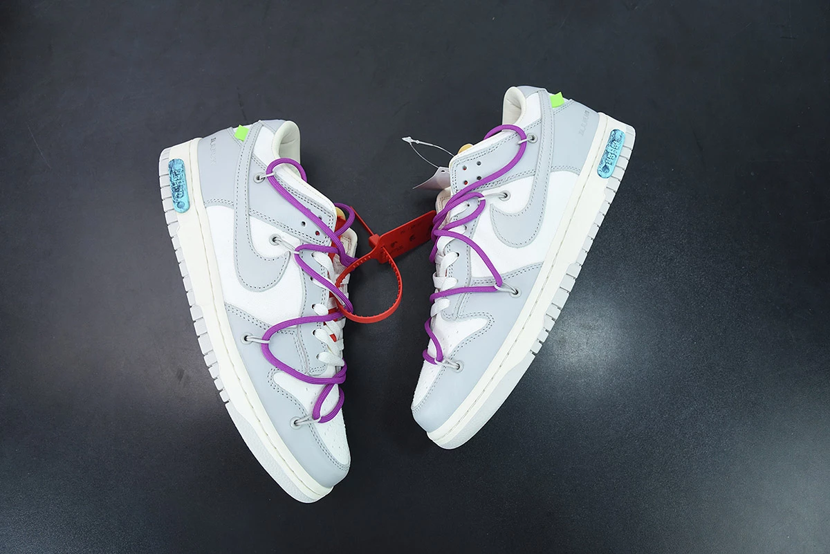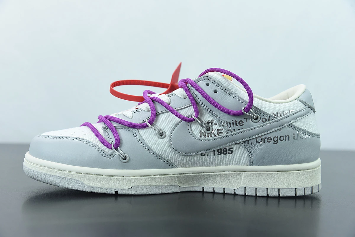 #50 interpolates familiar details and colors from Ablohβs past Nike collaborations with some fresh new details. Itβs done up in black and equipped with a metallic silver Swoosh a la the Off-Whiteβ’ x Nike Air Force 1 βMoMAβ from 2018, while also adding the overlaid rope lacing system from past Off-Whiteβ’ x Nike Dunk Low collaborations and cut-out oval detailing on the tongue thatβs borrowed from the Off-Whiteβ’ x Air Jordan 5.