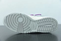 From a build standpoint, #50 mixes a textile toebox, quarter panel and collar with supple leather mudguards, eyestays, Swooshes and heels. Apart from the aforementioned Swooshes, thereβs signature silver text on the lateral quarter and a silver Nike Sportswear hit on the heel. Dashes of purple are introduced into the mix as well, appearing on the midsoleβs badge and the delicatley-pinned tag that hangs down from the lateral Swoosh.