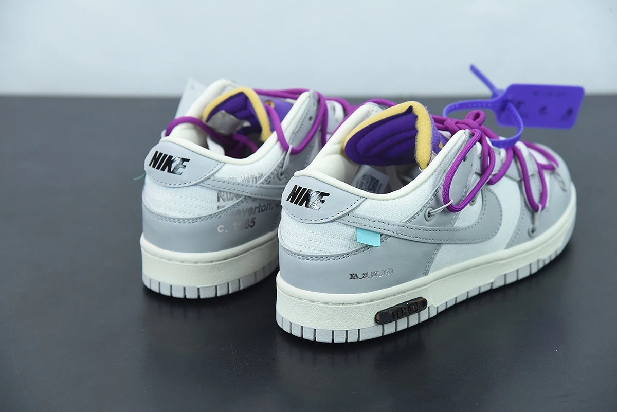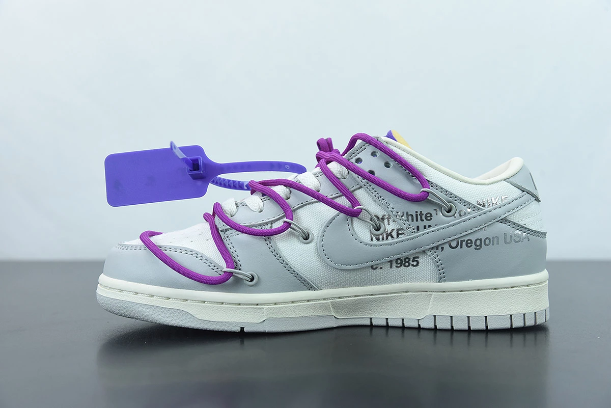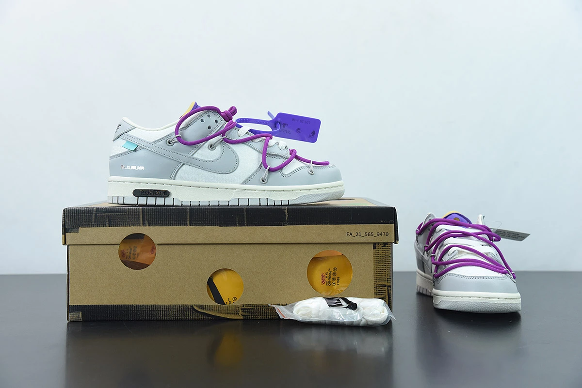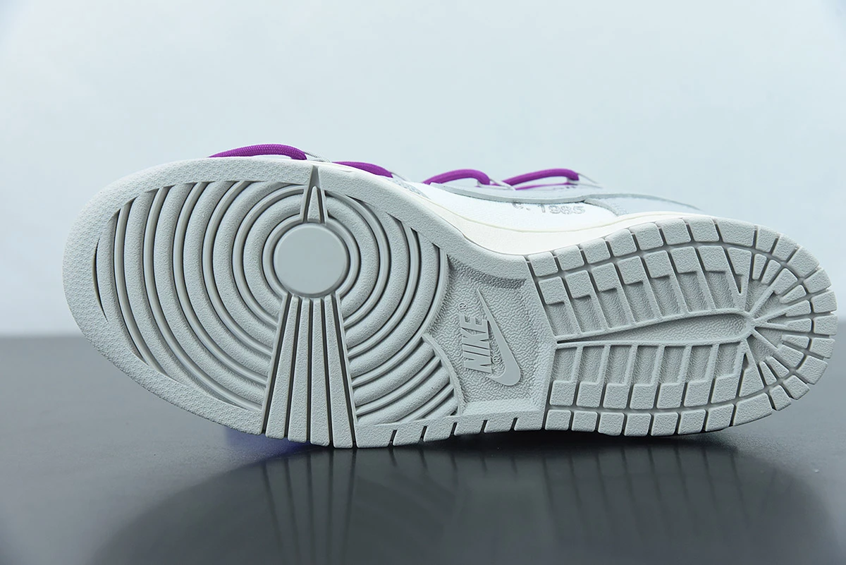 #50 interpolates familiar details and colors from Abloh’s past Nike collaborations with some fresh new details. It’s done up in black and equipped with a metallic silver Swoosh a la the Off-White™ x Nike Air Force 1 “MoMA” from 2018, while also adding the overlaid rope lacing system from past Off-White™ x Nike Dunk Low collaborations and cut-out oval detailing on the tongue that’s borrowed from the Off-White™ x Air Jordan 5.