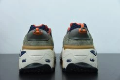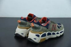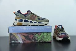 Blue mesh is used on the base with dark grey suede and maroon leather overlays. A brighter red is outlining the N logo on the quarter panel and on the liner with the cream midsole using navy and gold on the teeth-like paneling. Lastly, the funky heel counter is actually a whistle which is demonstrated by Williams in the video.